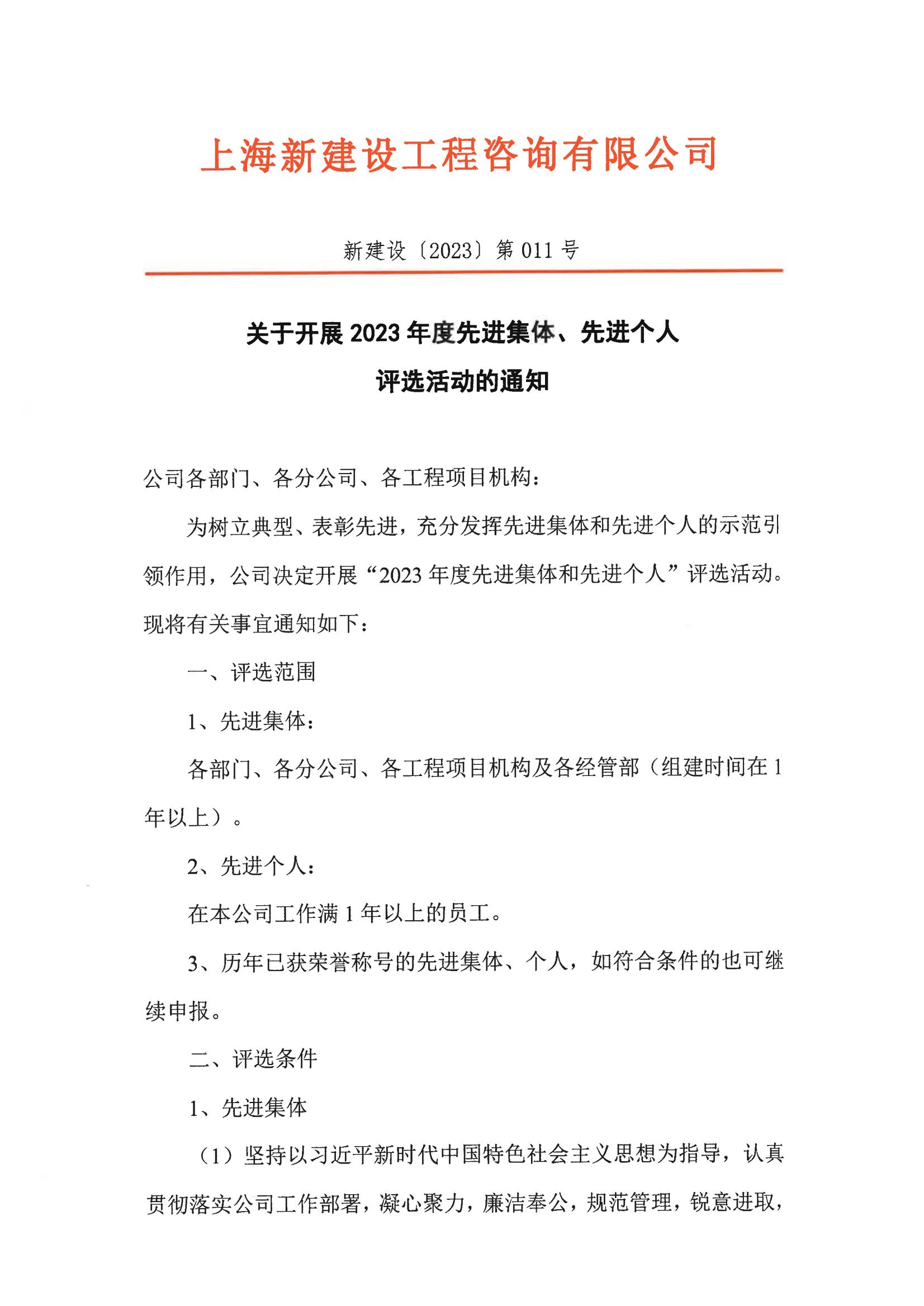 關于開展2023年度先進集體、先進個人評選活動的通知